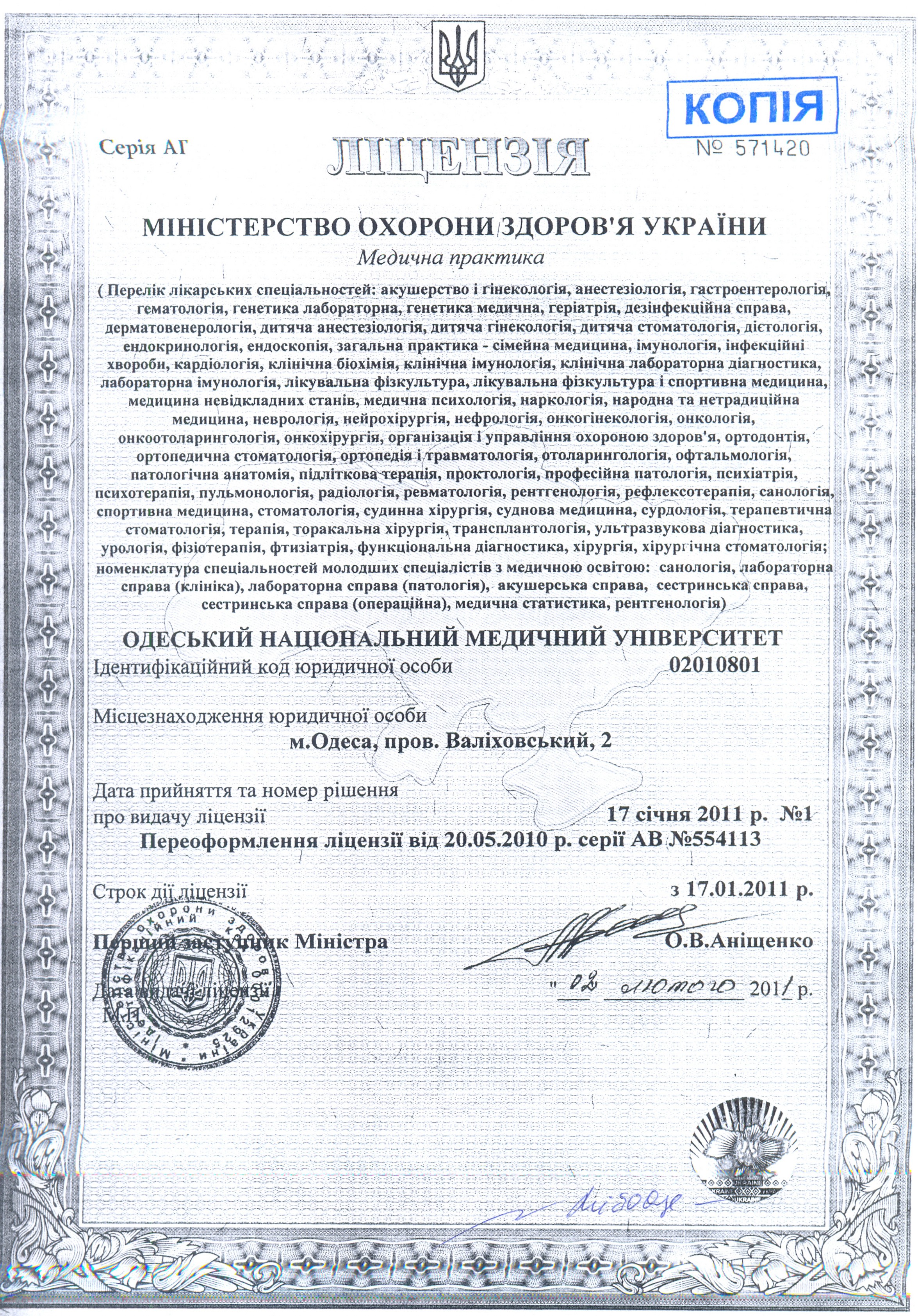 Лицензии и сертификаты Центра реконструктивной и восстановительной медицины ОНМедУ |
