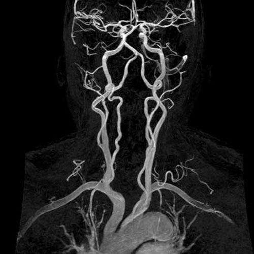 МРА артерій шиї Дослідження артерій шиї на МРТ або магнітно-резонансна ангіографія - це високоінформативний та безпечний метод, що дозволяє оцінити анатомічні та функціональні особливості кровоносного русла досліджуваної зони. Отримана в ході дослідження інформація дає можливість своєчасно призначити відповідне лікування і поліпшити прогноз патологічного процесу. Крім того, на підставі даних ангіографії можна провести планування оперативного втручання на судинах (стентування, ангіопластики). За допомогою ангіографії можна виявити: