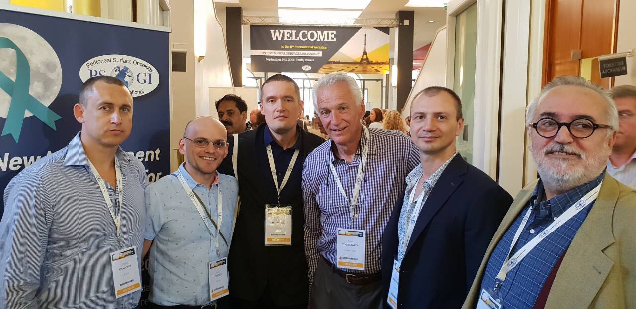 Міжнародна конференція з перитонеального канцероматозу, ПарижЗ 8 по 11 вересня представники кафедри хірургії №4 з курсом онкології Осадчий Д.М., Максимовський В.Є., Машуков А.О. відвідали конференцію PSOGI 2018, присвячену одному з найскладніших питань онкології – канцероматозу очеревини. Більше 1000 спеціалістів зі всього світу представили власний досвід, були розглянуті останні масштабні клінічні дослідження, результати яких здебільшого підтверджують ефективність циторедуктивної хірургії та HIPEC при раку яєчників, товстої кишки, мезотеліомі. Вітчизняну делегацію також представляли наші друзі Копецький В. (НІІ раку, Київ), Ярема Р., Фецич М. (Львів). Учасники конференції радо прийняли українських лікарів, дружньою та приємною була зустріч з колегами з Греції (Spiliotis John), США ( Paul Sugarbaker), Норвегії (Tony B. Mariathasan), представниками фірми RanD (Mirco Borra, Umberto Carletti). Висновки конференції наразі імплементуються у щоденну практику клініки.