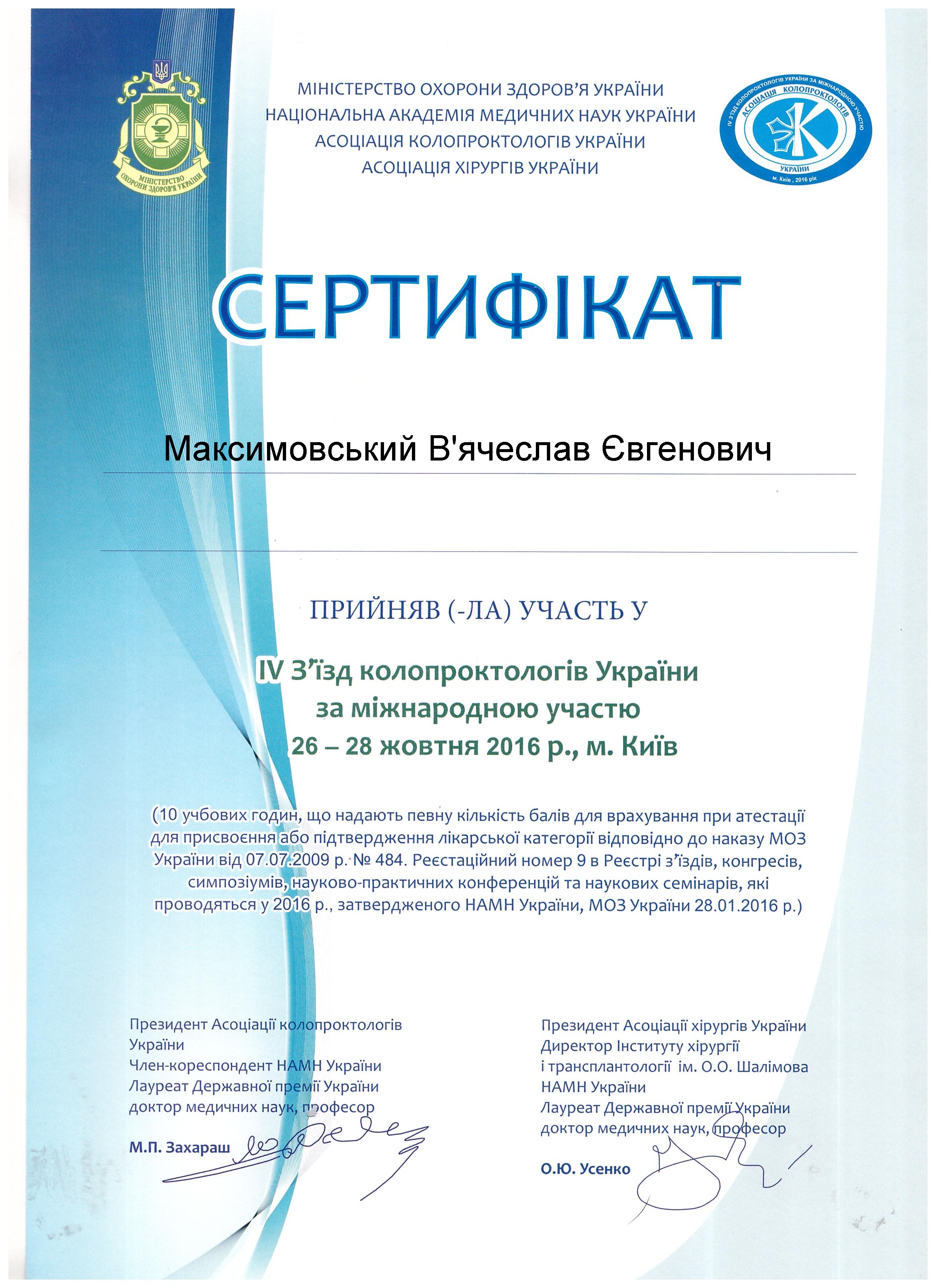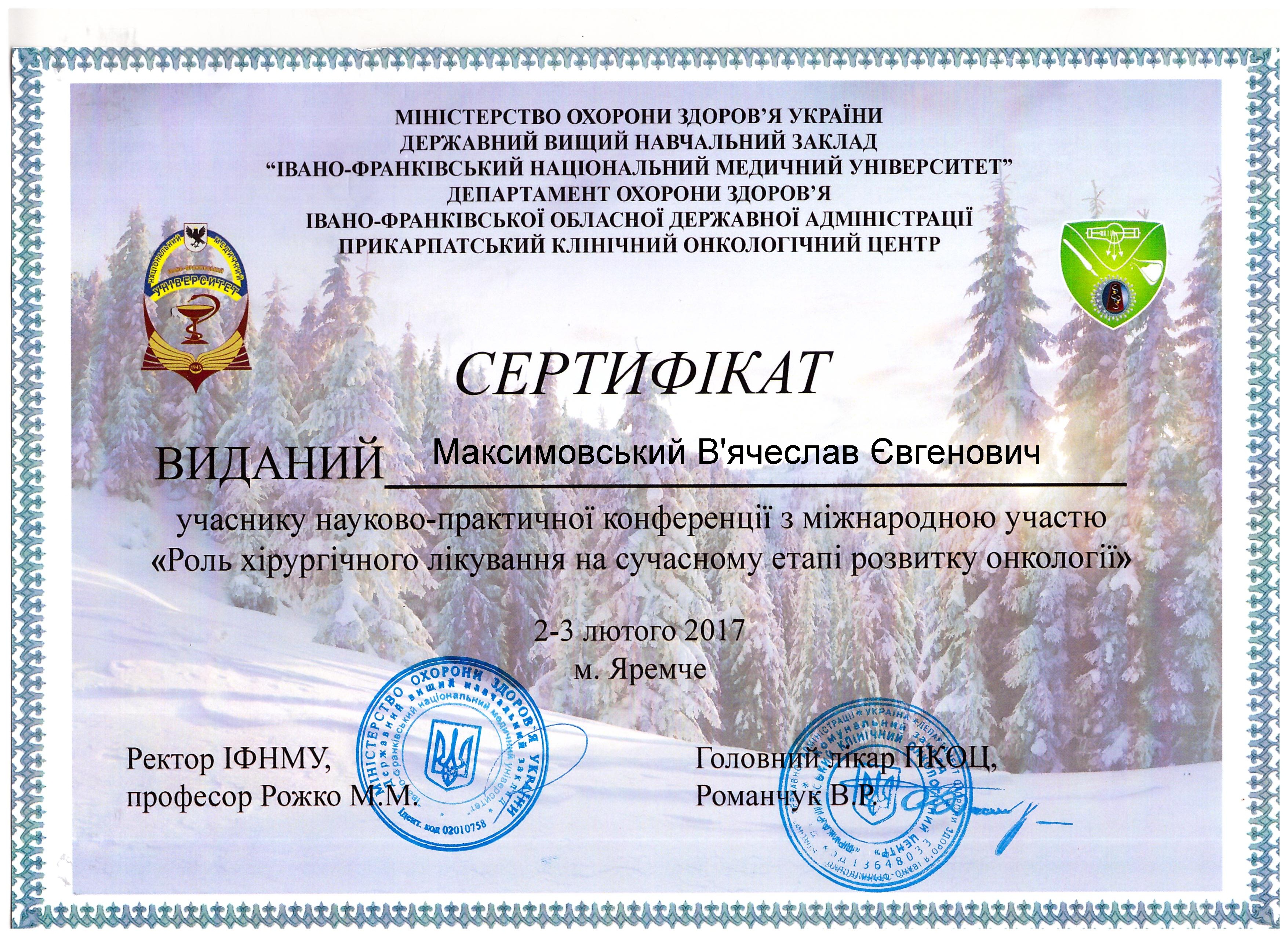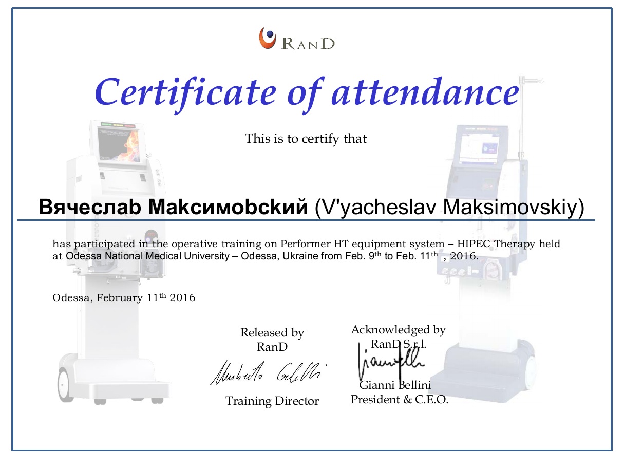 Сертификаты. Отделение хирургии
