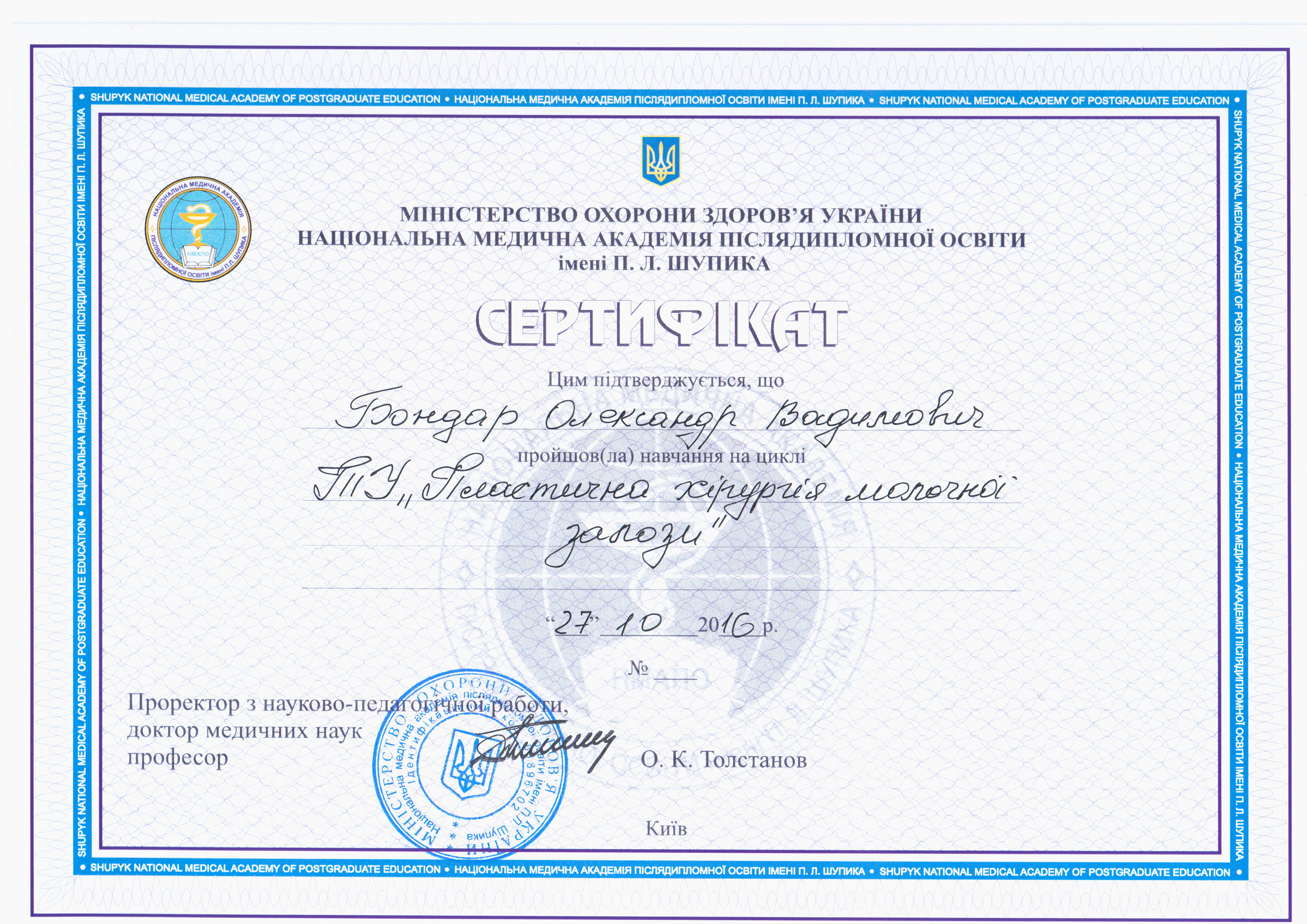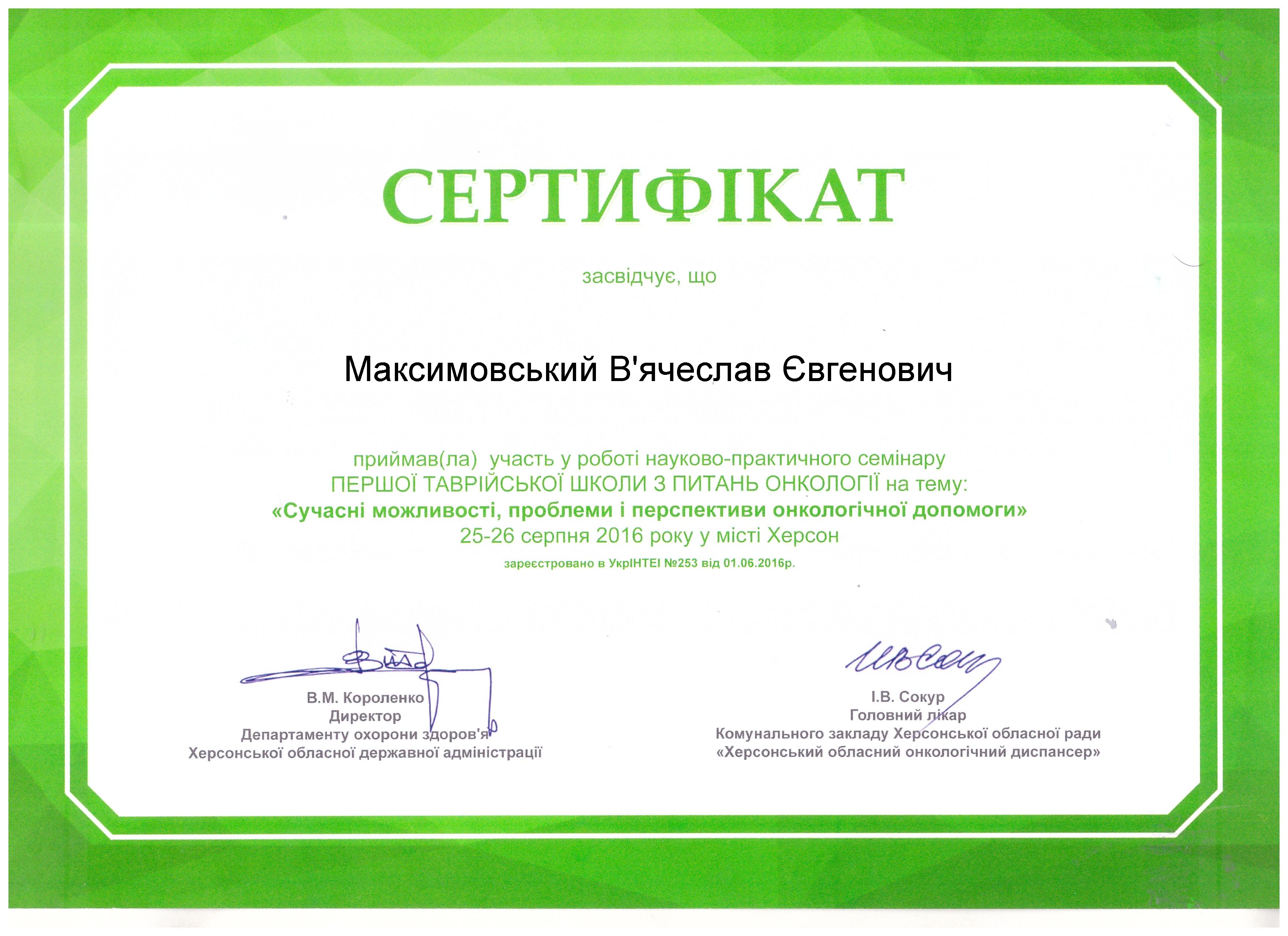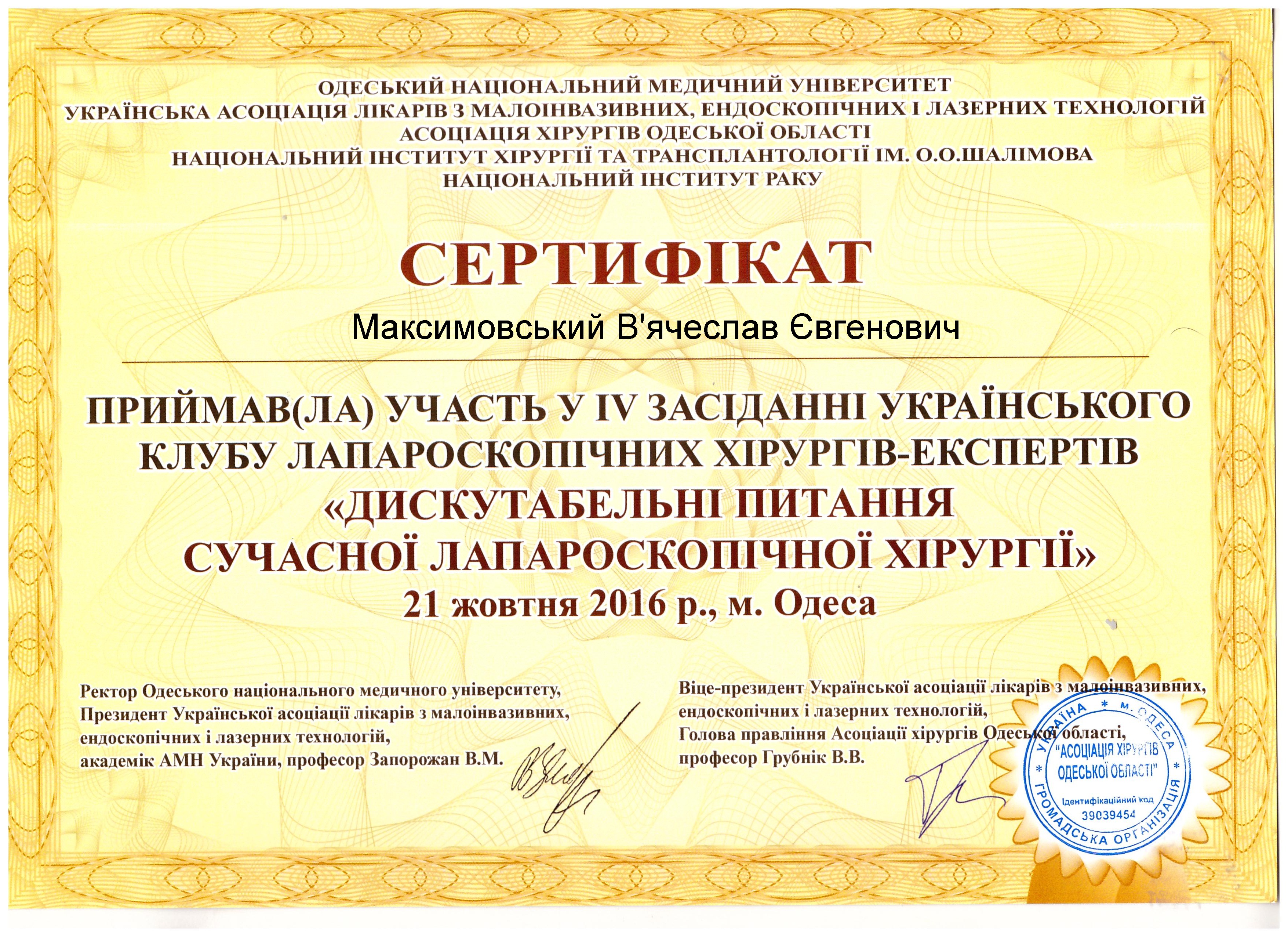 Сертификаты. Отделение хирургии